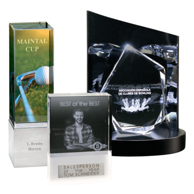 Zeigen Sie eine einzigartige Anerkennung von Leistungen mit kreativen und eleganten Trophäen. Selbst ein einfacher und schlichter Award verbunden mit Ihrem Logo oder einer Widmung ist für den Preisträger etwas Besonderes.