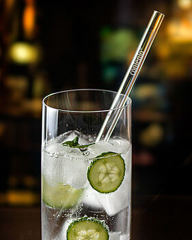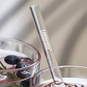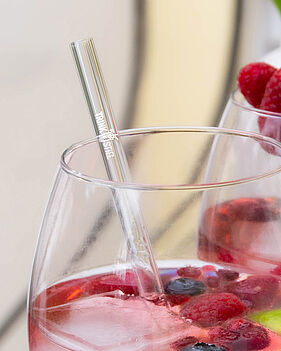 oder farbig bedrucken. Ein großer Schwerpunkt sind dabei nachhaltige Produkte, wie z.B. die Barbaydos Glastrinkhalme.