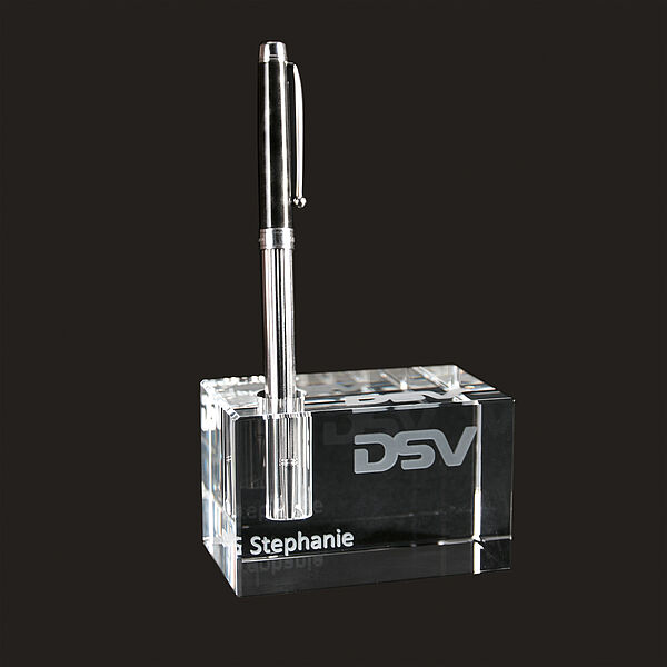 Das Laserinnengravieren eignet sich für unsere Werbegeschenke und Promotionartikel aus hochwertigem Kristallglas, beispielsweise Schlüsselanhänger aus Glas, Stifthalter, Glas-Cubes und-Scheiben etc.